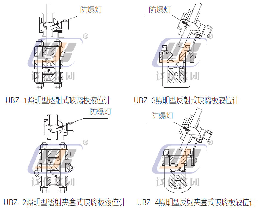 UBZ系列照明型玻璃板液位計是在UB-1、2、3、4及UBS-1、2、3、4基礎上,配有防爆照明設施的液位計,它可以在室內或夜間直接指示密封承壓容器和開口容器中介質液位高度。